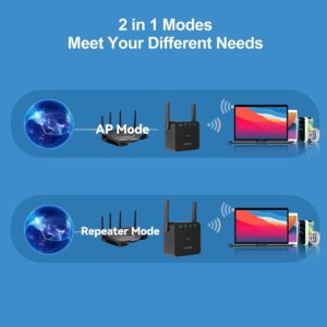WiFi Extender WiFi Booster Repeater لتقوية شبكة الإنترنت، يغطي حتى 5000 قدم مربع و50 جهاز، مع منفذ Ethernet، تعزيز إشارة لاسلكية للمنزل