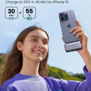 UGREEN Type-C كابل وباور بنك لهواتف iPhone 15 Pro Max/14/13 مع شحن سريع 20W، تصميم مدمج وآمن مع حماية كاملة، مثالي للسفر والعمل اليومي.