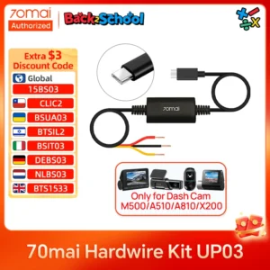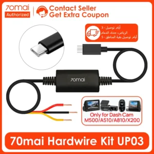 70mai Hardwire Kit UP03 كابل مراقبة 24 ساعة لـ Dash Cam M500/Omni X200/A810/A510 Type-C، حماية متقدمة، تركيب سهل، تشغيل مستمر وأمان كامل للسيارة.