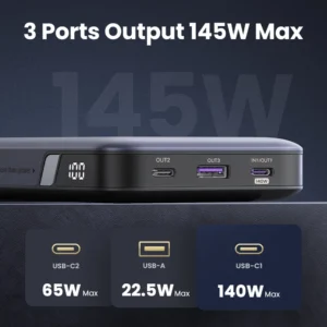 UGREEN قوة البنك 140 واط بسعة 25000 مللي أمبير PD، شحن سريع لجميع الأجهزة المحمولة، حماية متقدمة، متوافق مع الكمبيوتر المحمول، الهواتف وأجهزة Xiaomi.