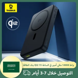 Baseus Qi2 بنك الطاقة المغناطيسي 10000mAh 15W شحن لاسلكي و22.5W شحن سلكي لهاتف iPhone 16/15/14/13/12 Pro Max